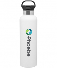 24 oz powder coated double wall 18/8 stainless steel thermal bottle with copper vacuum insulation, threaded gear-shaped insulated lid and carrying handle Complies with FDA, Prop 65. 11.25" H x 3" W