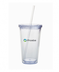 This high-quality 18 oz. sweatproof tumbler with double-wall insulation is perfect for your cold beverages. The screw-on lid comes with a removable drinking straw.